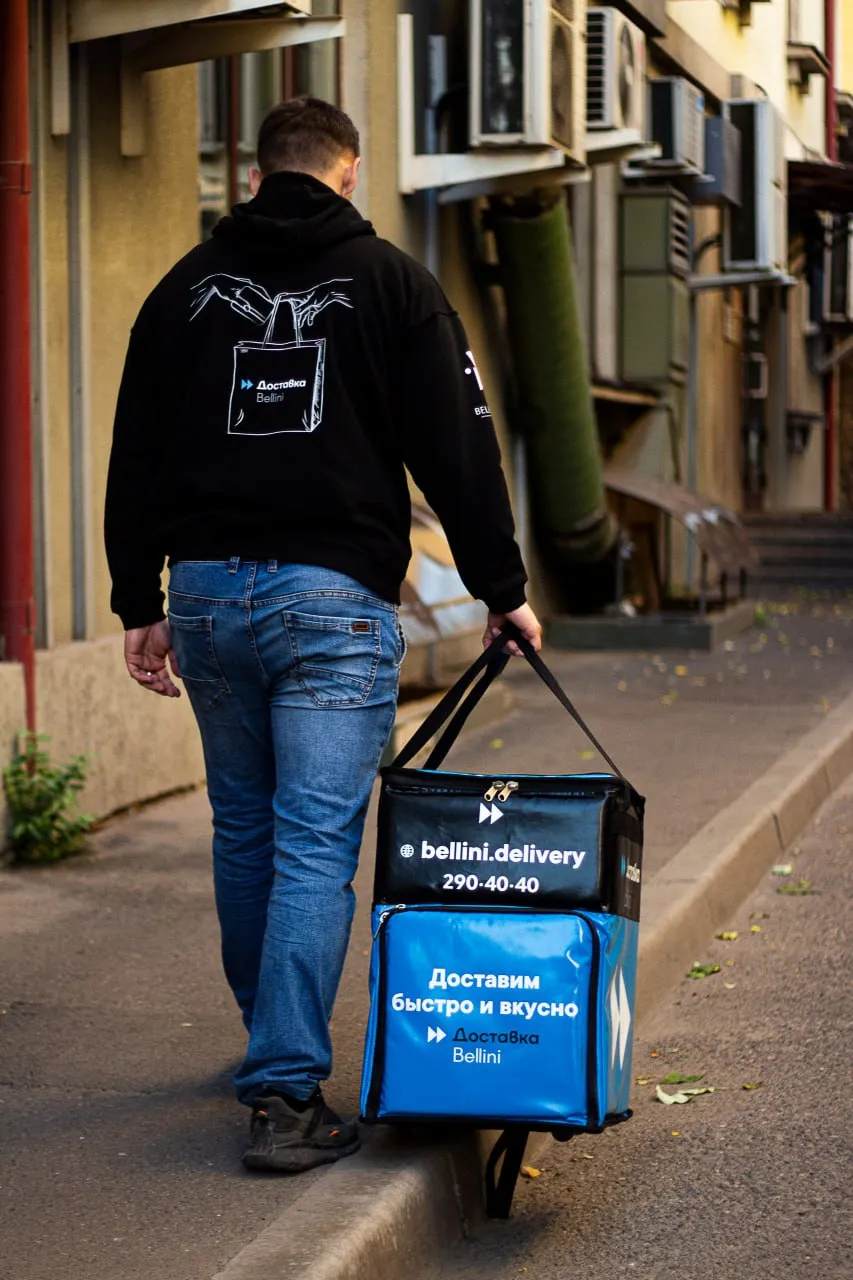 Для бренда Белини Доставка мы изготовили худи из качественного футера 3-х нитки (петля, плотность 330 г/м²). На изделие нанесена прямая печать и выполнена нашивка с логотипом на груди. Худи получились комфортными, износостойкими и подчеркивают фирменный стиль компании.